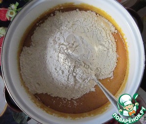 Когда масса начнет потихоньку пузыриться, всыпаем соду