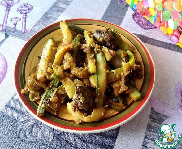 Ингредиенты для «Ароматная куриная печень с кабачками»: