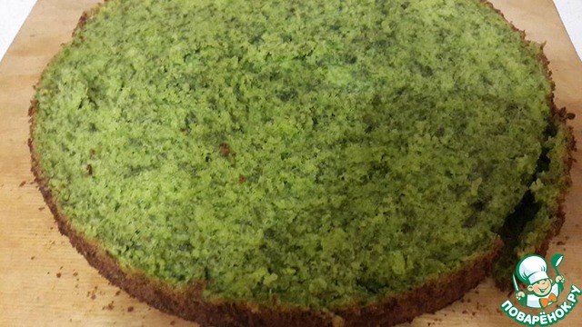 - Сахар (200 гр- на шпинатный корж, 140 гр- на белковый крем, 150 гр- на бисквитный корж) — 490 г