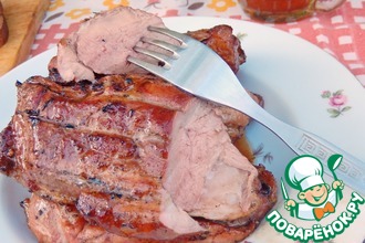 Не забываем через каждые 10 минут смазывать маринадом, кисточкой, не льём. Появившийся огонь тушим солью.