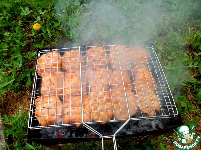 Приготовить угли и, как только будут готовы, выкладываем бедрышки на решетку.