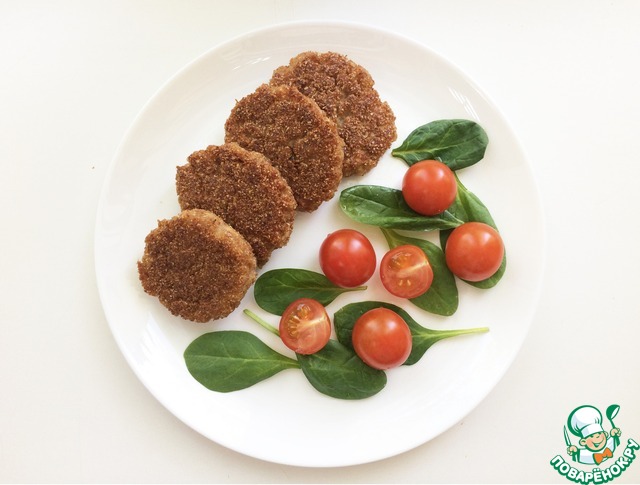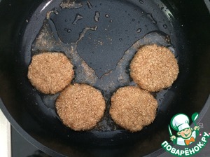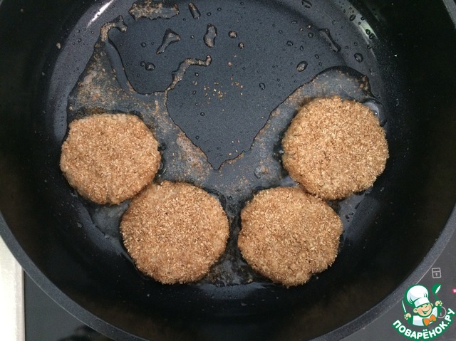 2. Из получившейся массы сформировать небольшие котлеты в форме бургеров. Обвалять каждый бургер в клетчатке со всех сторон. Для панировки я использую пшеничную клетчатку, она придает блюду аппетитный золотистый оттенок и злаковый привкус.