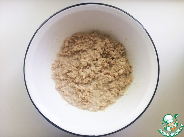 1. Смешать соевый фарш, сливки, овсяные хлопья, льняную муку, соль и специи в одной емкости, залить теплой кипяченой водой. Перемешать и оставить на 5 мин для набухания.