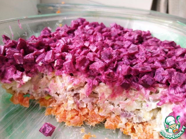 Рецепт «Салат "Сельдь под шубой с яблоком"»: