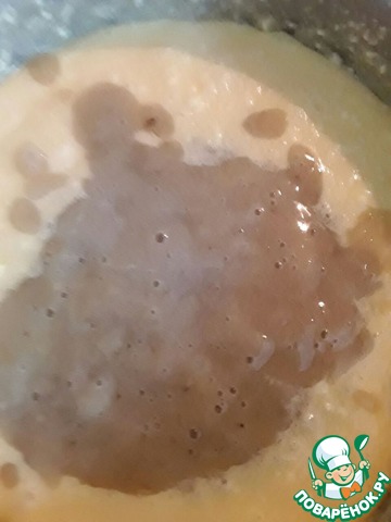 Соединяем всё вместе с мукой и снова хорошо перемешиваем.
