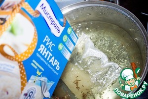 Добавляем в кипяток пакетик вкусного, рассыпчатого риса Янтарь, ТМ Мистраль, прикрываем крышкой и забываем о нем на 30 минут.