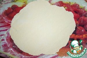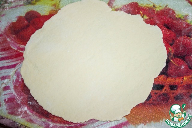 Доску присыпаем мукой. Тесто раскатываем тонко-тонко, буквально в миллиметр толщиной.