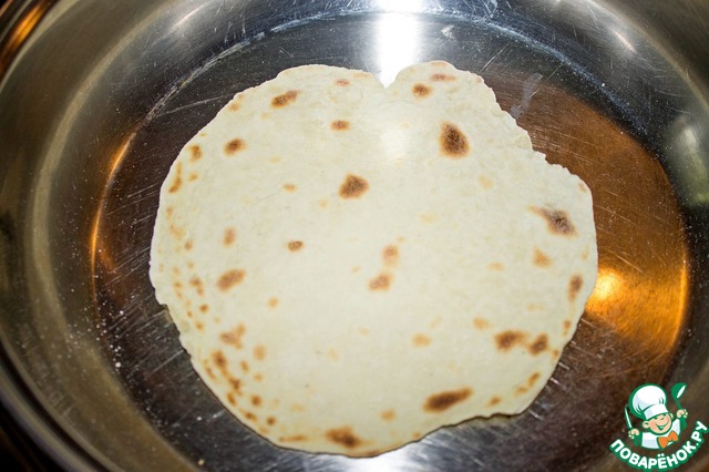 Пока варится рис, мы приготовим лепешки и начинку.