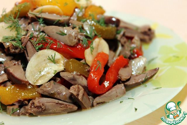 Рецепт «Закуска из куриных сердечек и перцев в медовом маринаде»: