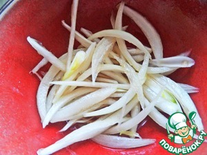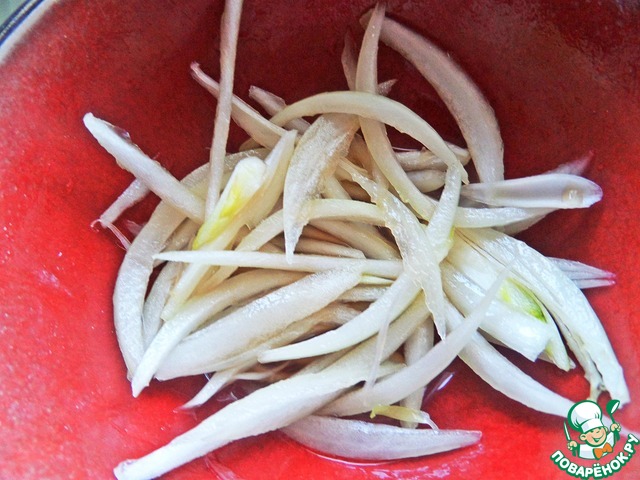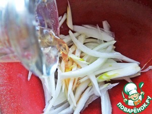 Нарезать тонко и залить уксусом на несколько минут.