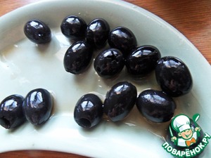 Маслины отделить от жидкости и косточек, если есть.