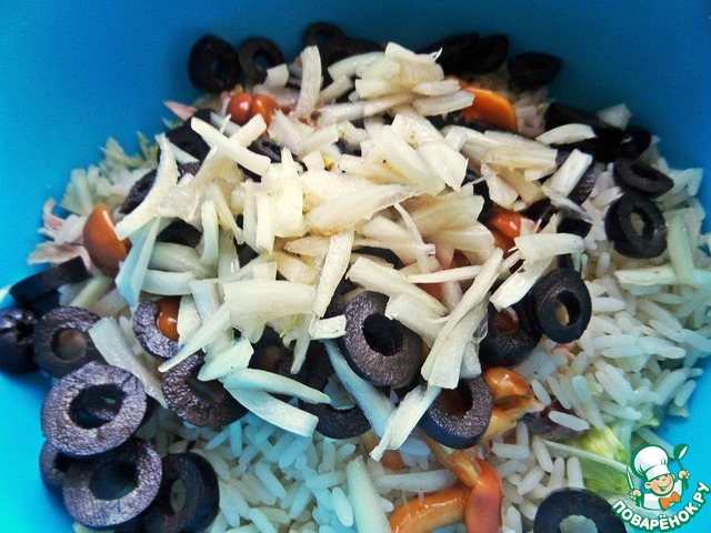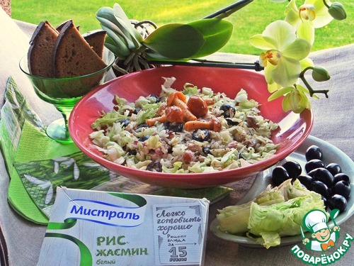 Готовый рис Жасмин от ТМ"Мистраль" высыпать к салату и курочке.