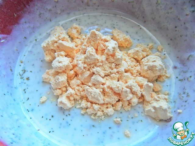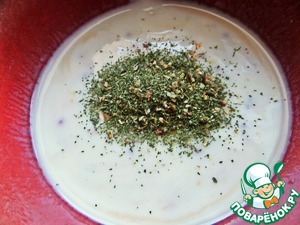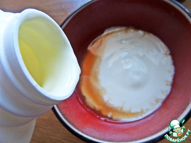 Заправка-соус. В тот уксус от лука влить густой кефир или сметану.