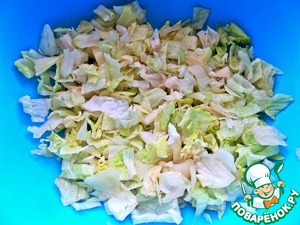 Салатные листья измельчить на кубики.