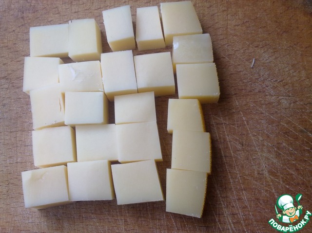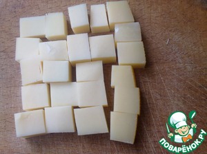 Нарезаем сыр кубиками.