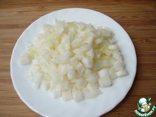 Лук мелко нарезать.
