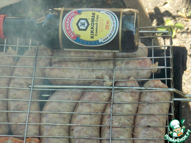 • Обжариваем наши купаты до готовности на решетке смазанной рафинированным растительным маслом, чтобы не прилипали.