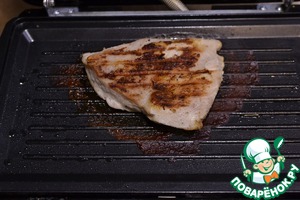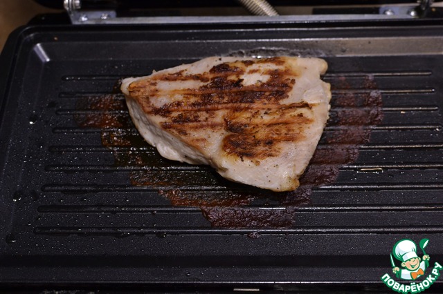 Обжариваем куриную грудку на гриле 12-15 минут.