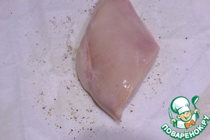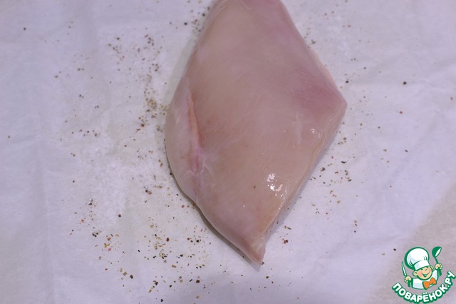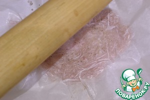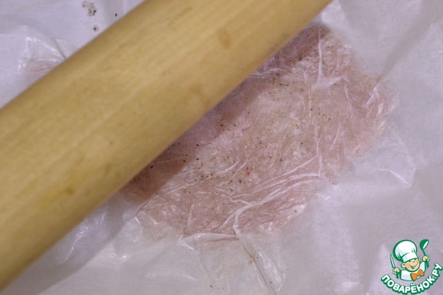 Слегка отбить филе скалкой, только для того, что бы оно было одинаковой толщины.