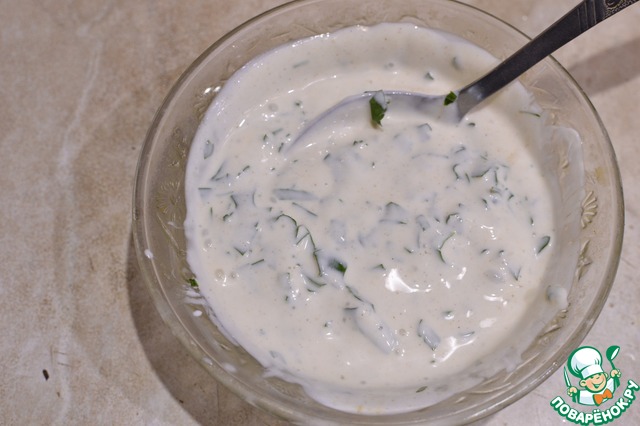 Смешать сметану, йогурт, горчицу и лимонный сок.