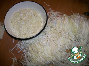 Шинкуем капусту: для тестa очень мелко, для начинки обычной стружкой.