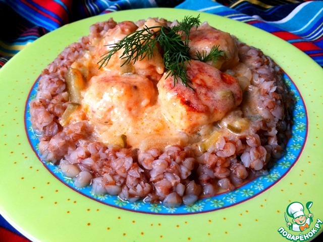 Рецепт «Фрикадельки по-строгановски с гречкой»: