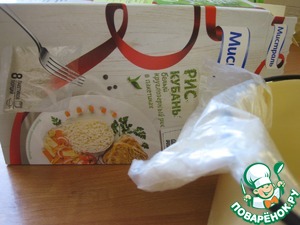 В этом блюде я использовала пакетированный рис "Кубань" от Мистраль - очень удобно отварить заранее пакетик (я сделала это с вечера),