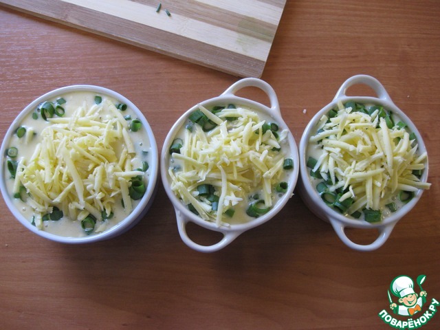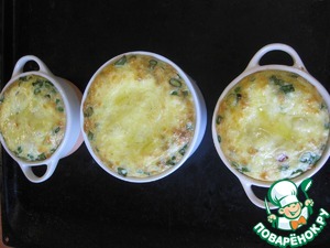 Залить заливкой и посыпать оставшимся сыром, поставить в духовку при 180-200*С на 20-25 минут и запекать до румяной корочки