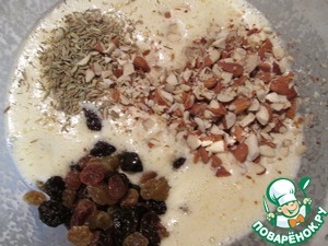В тесто добавила изюм, курагу и грецкие орехи.