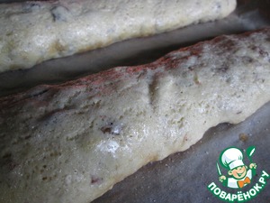 Остывшее тесто нарезаем острым ножом чуть наискосок. Сухарики должны быть толщиной примерно 1 см. Раскладываем их на противне и отправляем в духовку еще минут на 20.