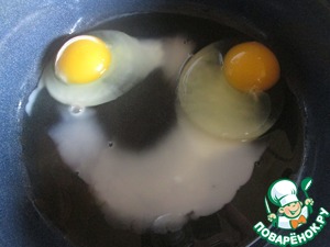 На сковороде разогреваем кленовый сироп и вбиваем яйца.