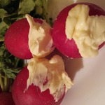 Уложить на тарелку. Можно убрать редиску в холодильник минут на 30, чтобы она приобрела хрусткость, а масло успело застыть. Мы использовали сразу.