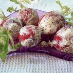[+4]У меня свой редис ассорти, масло взбила с солью и паприкой, редиску хорошо очень обсушила, и масло в принципе неплохо прилипало на нее) но кое где мазала ложкой.