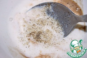 • Готовим заправку:смешиваем сметану, сливки, молоко, уксус. Солим, перчим и тщательно размешиваем.