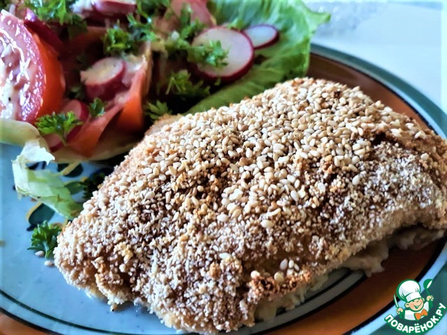 Рецепт «Рыба с сыром в кунжутной панировке»: