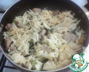 И, наконец, добавляем натертое на крупной тёрке яблоко. Обжариваем 1 минуту.