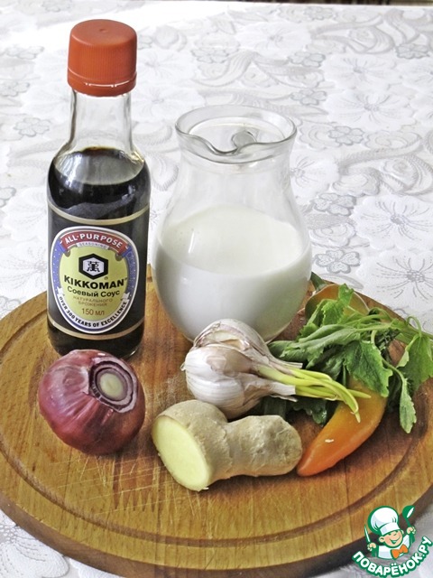 Смешать с соевым соусом TM Kikkoman All Purpose и кокосовым молоком.