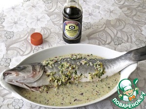 Сибас почистить, залить маринадом и поставить на час в холодное место под гнет. Не рекомендуется для сибаса готовить маринад из слишком агрессивных ингредиентов (типа уксуса, вина), и очень важно, что бы после процесса маринования родной вкус рыбы остался выраженным в достаточной степени. Мариновать рыбу не стоит очень долго.