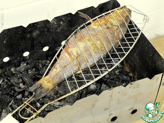 Обжаривать рыбу необходимо над хорошо прогоревшими угольками в течение 10-12 минут с каждой стороны. Рыба готовится довольно быстро, и поэтому ее пересушивать не надо.