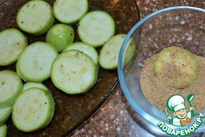 Кабачок вымыть, нарезать на тонкие шайбы.