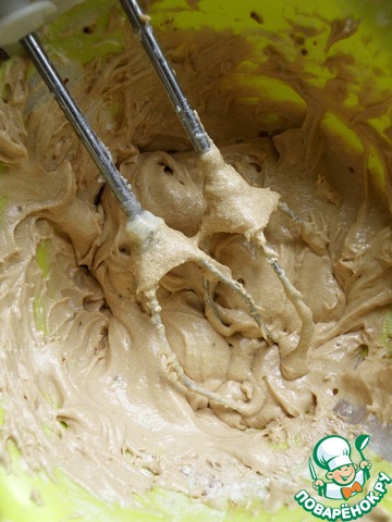 Просеять муку с разрыхлителем. Работа на малых оборотах миксера, попеременно добавлять частями муку и молоко. Начать и закончить мукой.