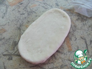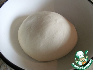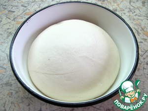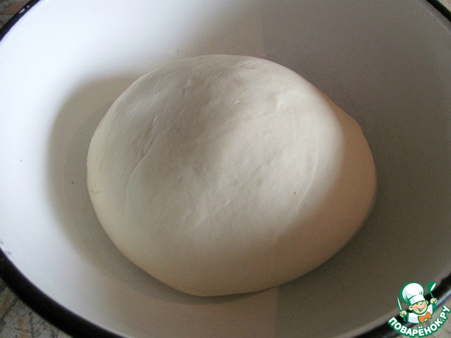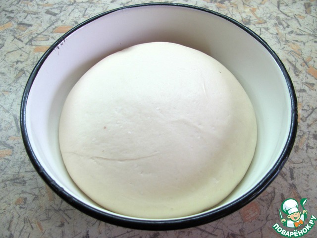 Дрожжи растворить в воде. Смалец должен быть очень мягким или растопить, охладить. Замес я производила в ХП (5*5*7). Сложить все ингредиенты согласно инструкции или замесить тесто руками. Тесто мягкое, но совсем не липнет. Тесто растянуть-сложить, накрыть и поставить на брожение. Брожение 90 минут при температуре 27-28 градусов.