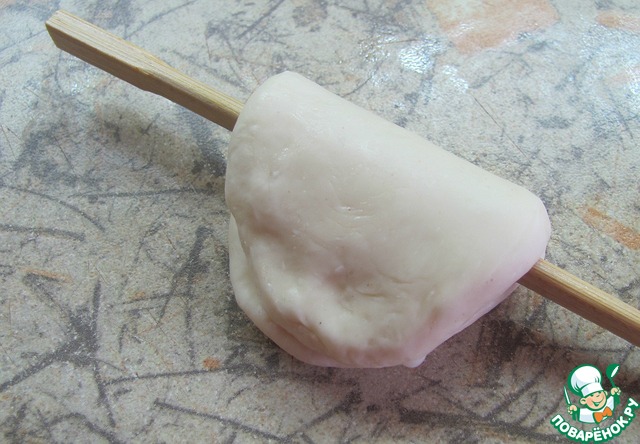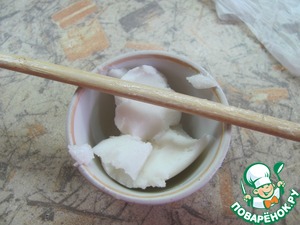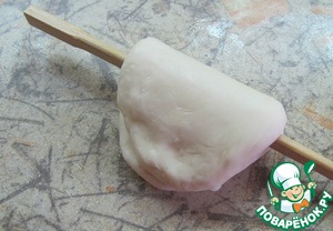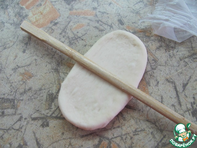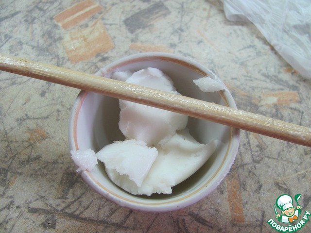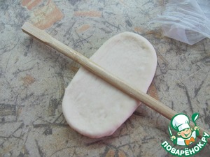 Деревянную палочку (я взяла китайскую для еды) смазать смальцем. Стол смазать растительным маслом.