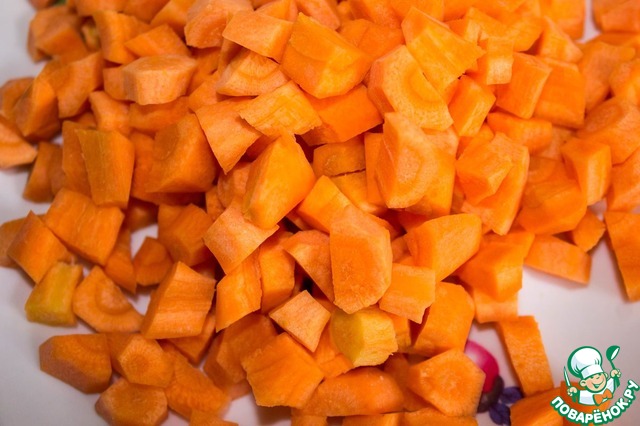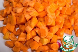 Итак, выбранный овощ, в данном случае морковь, режем небольшими кубиками.