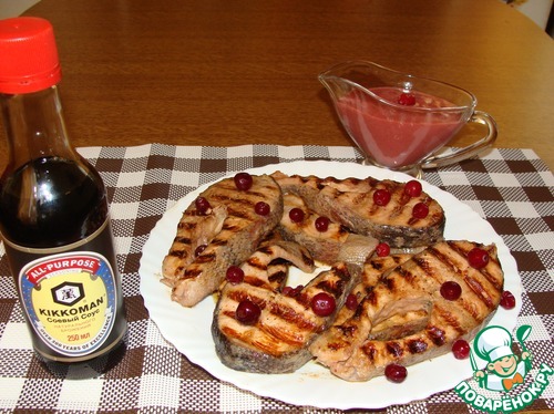 Описание: Весь секрет необычного вкуса, мягкости и сочности этого блюда, заключен в маринаде на основе яблочного пюре и брусники, из которого впоследствии делается соус. Рыбка получается красивого розового цвета. И если у Вас нет возможности приготовить рыбу на углях, смело делайте на электрическом гриле или в духовке, она получается не менее вкусной. Готовится за считанные минуты. Можно брать не только форель, но и любую красную рыбу.