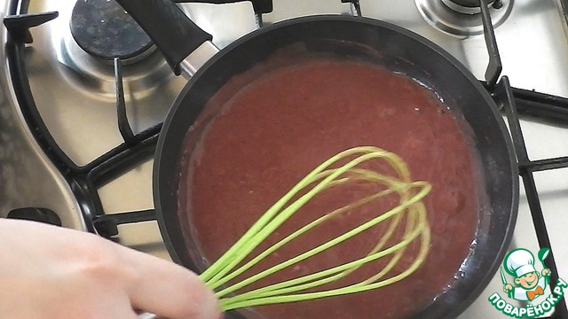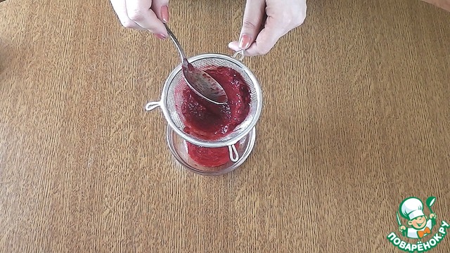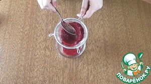 Измельчить бруснику блендером и, если Вам не нравится кожица от ягод, протереть через сито. |