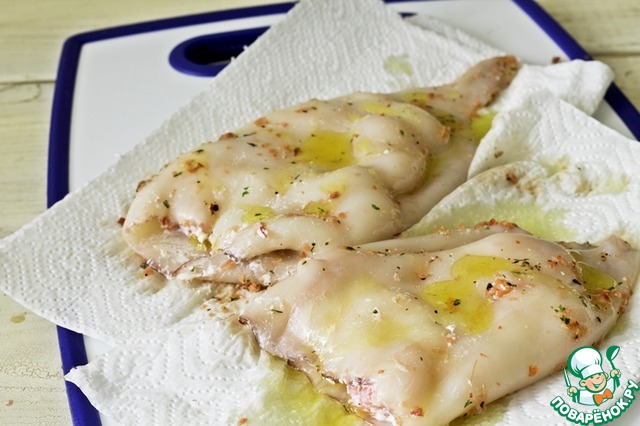 1. Температура гриля должна быть высокой, поскольку кальмар готовится очень быстро, около 2-3 минут на каждую сторону, иначе мясо станет резиновым.