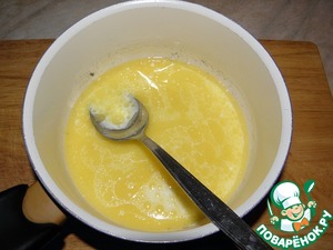 Сначала в кастрюльке растапливаем сливочное масло (дно толстое)