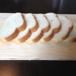 Батон нарезать на ломтики высотой 1-1,5 см.