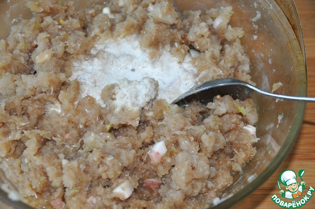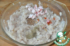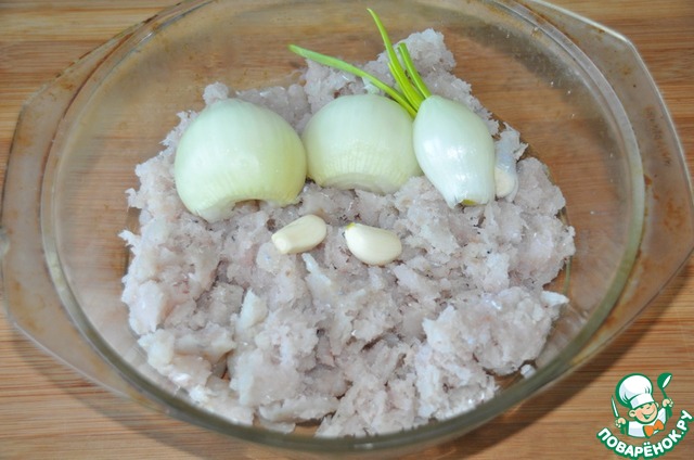 - Фарш рыбный (минтай, краснопёрка, лосось и т.д.) — 500 г